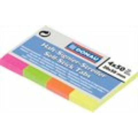 Jelölőcímke, papír, 4x50 lap, 20x50 mm, DONAU, vegyes szín - ideális rövid üzenetekhez (telefonszámok, árak, hivatkozások stb.) - írható felület - papír alapanyag - áthelyezhető - 4 különböző, fluoreszkáló szín a csomagban - lapok száma: 4x50 Gyá