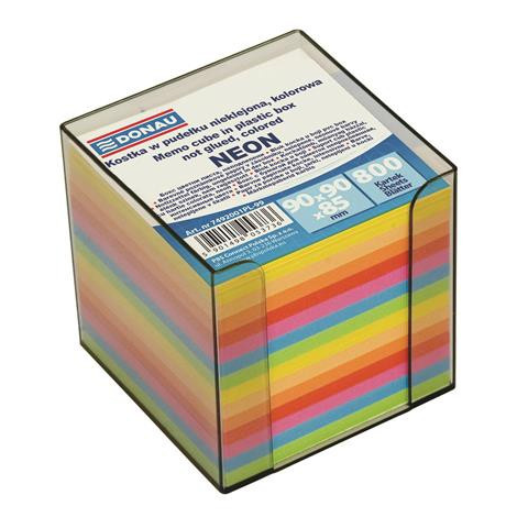 Kockatömb, 90x90x85 mm, adagolóval, DONAU, színes Jegyzetre fel! -üzenethagyásra, feljegyzésekhez az irodában és otthon -90x90 mm színes jegyzetlapok áttetsző, műanyag adagolóban -800 lap/tömb (nem ragasztott) -utántölthető (D830299, D831599)) Gyár