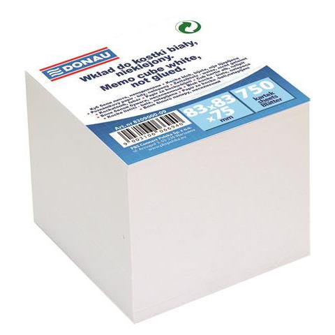 Kockatömb, utántöltő, 83x83x75 mm, DONAU Jegyzetre fel! -üzenethagyásra, feljegyzésekhez az irodában és otthon -83x83 mm fehér jegyzetlapok -750 lap/tömb (nem ragasztott) -használható önállóan vagy papíradagoló utántöltésére (D7490) Gyártó/első EU f
