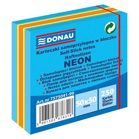 1 kép DONAU Neon 50x50mm öntapadó jegyzettömb - 6 színű (250 lap / tömb) (7575041-99)