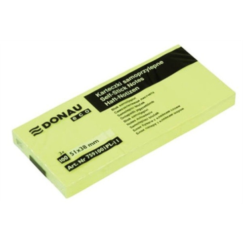 Öntapadó jegyzettömb, 38x51mm, 3x100 lap, Donau ECO , sárga Öntapadó jegyzettömb, 38x51mm, 3x100 lap, Donau ECO , sárga