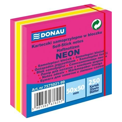 1 kép DONAU Öntapadó jegyzettömb, 50x50 mm, 250 lap, DONAU, neon rózsaszín