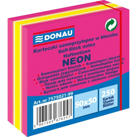 1 kép DONAU Öntapadó jegyzettömb, 50x50 mm, 250 lap, DONAU, neon rózsaszín (7575021PL-99)