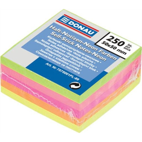 DONAU Öntapadó jegyzettömb, 50x50 mm, 5x50 lap, DONAU, neon szín