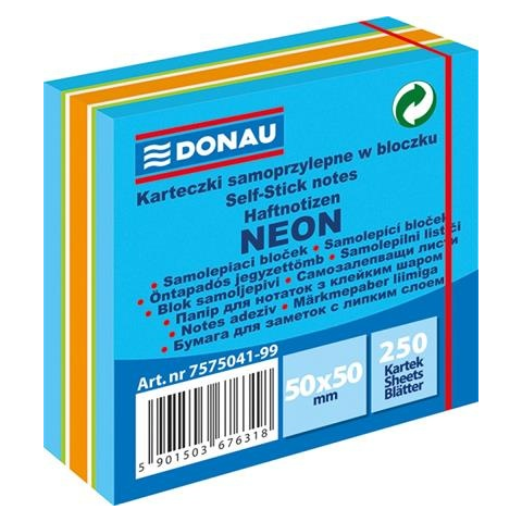 1 kép DONAU Öntapadó jegyzettömb, 50x50mm, 250 lap, DONAU, neon színek