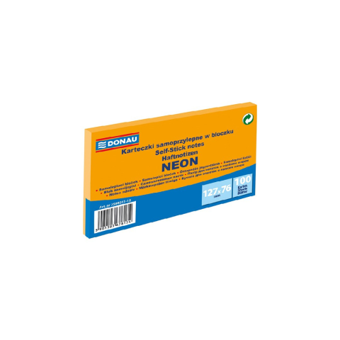 1 kép DONAU Öntapadó jegyzettömb DONAU 76x127 mm 100 lap neon narancssárga