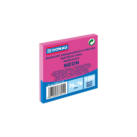 1 kép DONAU Öntapadó jegyzettömb DONAU 76x76 mm 100 lap neon rózsaszín