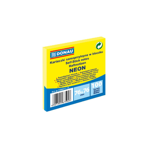 1 kép DONAU Öntapadó jegyzettömb DONAU 76x76 mm 100 lap neon sárga