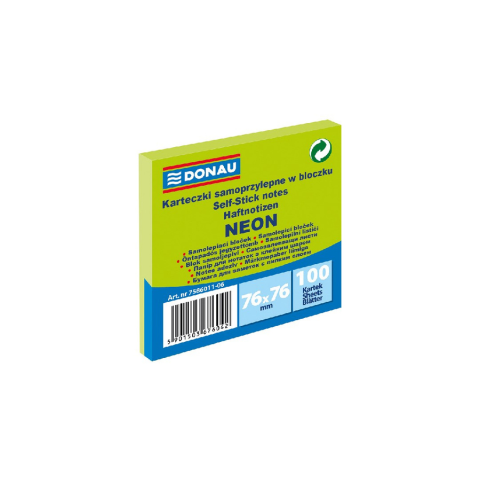 1 kép DONAU Öntapadó jegyzettömb DONAU 76x76 mm 100 lap neon zöld