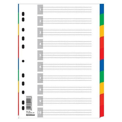 1 kép DONAU Regiszter, műanyag, A4, 10 részes, színes (D77100)
