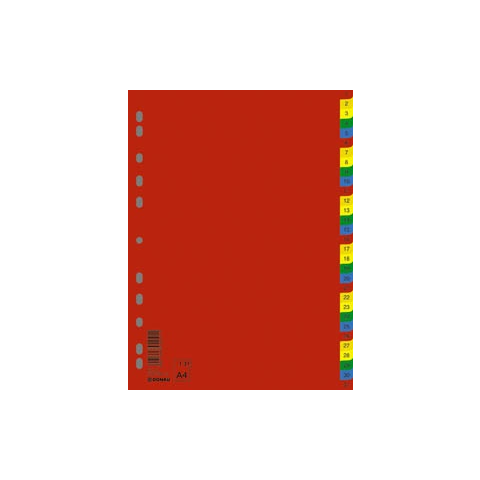 DONAU Regiszter, műanyag, A4, 1-31, DONAU, színes