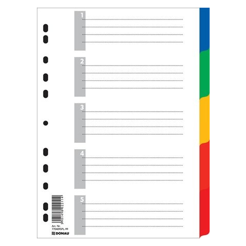 1 kép DONAU Regiszter, műanyag, A4, 5 részes, DONAU, színes