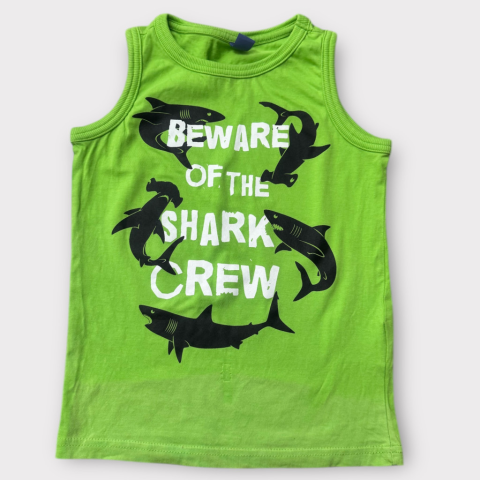 Cápás, ujjatlan felső Egyenes szabású, kerek nyakkivágású, vagány cápás mintával. Szép állapotú (az elején van egy halvány pötty), nem feltűnő, alig észrevehető.