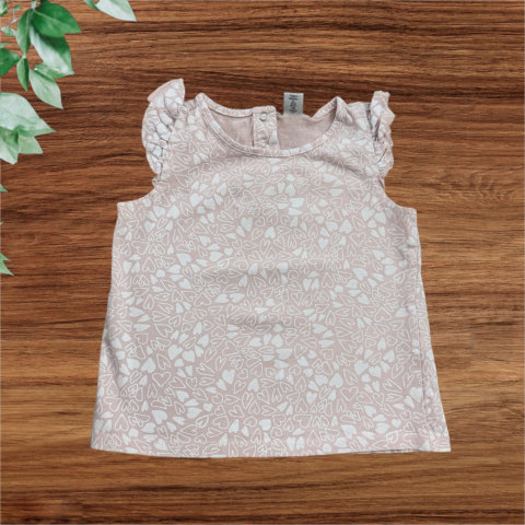 Szívecskés felső Egyenes szabású, kerek nyakkivágású, nyakánál patentos, válla fodros. Kellemes pamut anyag. Szép állapotú.