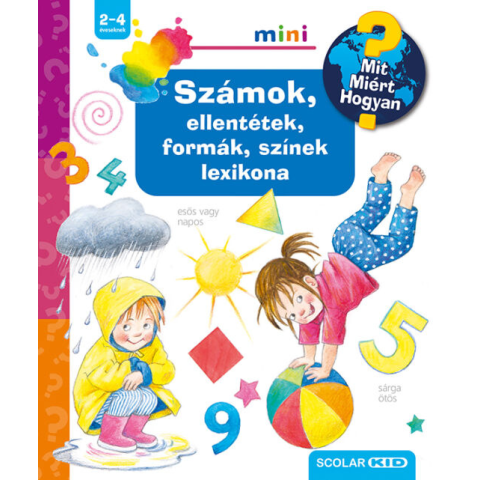 A Mit? Miért? Hogyan? Mini gyermekkönyvsorozatának e kötetében a kisgyerekek rengeteg példát találnak a különböző ellentétpárokra, formákra, mintákra és színekre. Megtudhatják többek közt, mi a vidám ellentéte, melyik állat nagy és kicsi, mit veszünk fel, ha meleg az idő, mi a négyzet és a kocka. Ezenkívül megismerkedhetnek a számokkal is, például a réten élő növényeket és állatokat számolva.