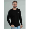 Dorko Férfi Póló Lewis 25FMA0026__0001. Színe: fekete LEWIS egy egyszerű, letisztult fazon kis méretű, printelt logóval a mellrészen. Anyaga vastagabb tapintású, mint a rövid ujjú pólóké: 65% pamut és 35% poliészter keveréke gondoskodik a tartósságról és a kényelemről. Ideális választás az átmeneti időszakra vagy réteges öltözködéshez. A modell 189 cm magas és L-es méretet visel. \x0d\x0a 25FMA0026__0001