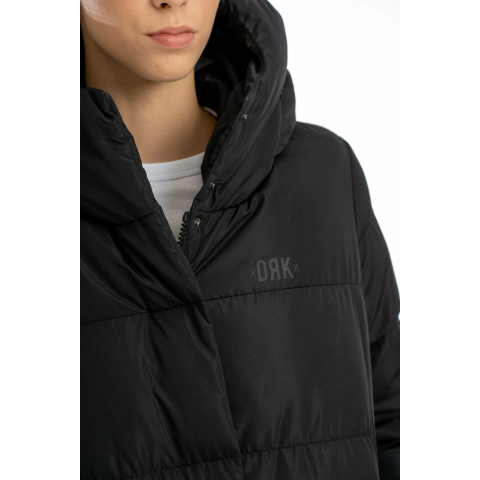 Anyaga: PoliészterA DRK KATE tökéletes társ a hideg téli napokon. Cipzáras, pufi kialakításának köszönhetően igazán meleg, miközben a nem levehető kapucni és a tone-in-tone logó stílusos megjelenést biztosít. A cipzáras zsebek praktikusak, az alján lévő gumis behúzással pedig könnyedén szabályozhatod a kabát bőségét. Az ujjak végén található kötött passzé extra kényelmet és védelmet nyújt a hideg ellen. Anyagösszetétel: 100% polészter.