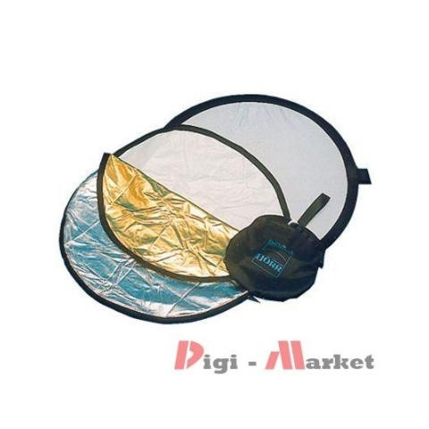 30 cm átmérőjű, 1 db összecsukható derítőlapot tartalmazó készlet. A diffúz derítőlapra a különböző felületű bevonatokat cippzáras megoldással lehet ráhúzni.