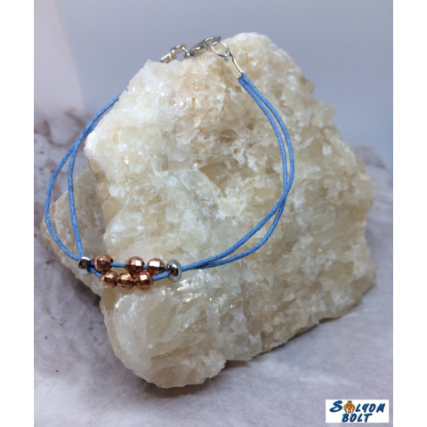 1 kép Dorys Kézműves karkötő kék zsinórral és rozé-arany színű bogyókkal