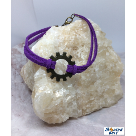 1 kép Dorys Kézműves karkötő lila bőrcsíkkal és fogaskerékkel