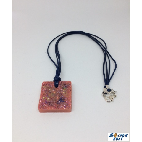 Csillogó, rózsaszín, műgyanta medál dupla kék zsinórral Medál mérete: 2,5 x 2,5 cm Nyaklánc hossza: 44 cm