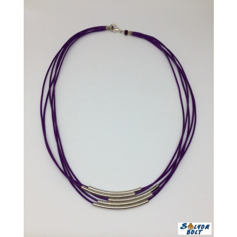 1 kép Dorys Kézműves nyaklánc, lila zsinór, hajlított cső medálok