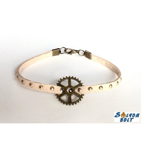 Steampunk karkötő fogaskerékkel, szegecses bőrszíjon Anyaga: bőr, fémötvözet Hossza: 20 cm Kiknek ajánljuk a kézműves karkötőt? - Stílusos kiegészítők kedvelőinek: Akik szeretik az egyedi és kézzel készített ékszereket. - Ajándékot keresőknek: Akik kül