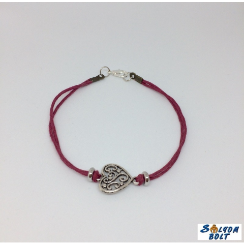 1 kép Dorys Zsinóros karkötő mályva színben, szív medállal, kézműves termék