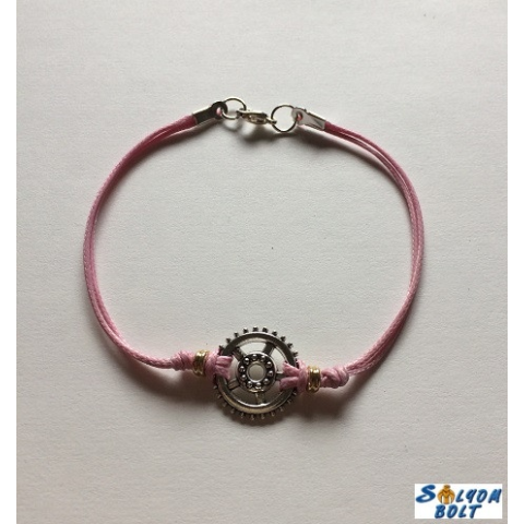 1 kép Dorys Zsinóros karkötő rózsaszínben, kicsi díszes fogaskerékkel, kézműves termék
