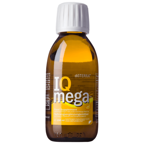 Ez a nagyszerű ízű, könnyen lenyelhető IQ Mega omega-3 étrendkiegészítő adagonként 1300 mg koncentrált omega-3-zsírsavat tartalmaz, a halolaj halas ízét pedig a dōTERRA vadnarancs CPTG™ minősítésű esszenciális olajának friss, narancsos zamatára cseréli le. Az IQ Mega™ táplálékkiegészítőt a dōTERRA a2z Chewable rágótablettával való együttes, napi rendszerességű szedésre fejle