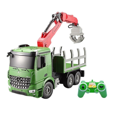 Távirányítós darus teherautó Ez a modell a Mercedes-Benz Arocs darus teherautó kicsinyített távirányítós változata. Irányható előre, hátra, fordul jobbra és balra ill. a daru is irányítható rajta. Jár hozzá néhány műanyagból készült farönk is, amivel gyakorolni tudod a daruzást. Tulajdonságok: Méretarány: 1:20 2,4 GHz-es frekvencián működő távirányító Méretek: 38 x 21 x 17 cm Akkumulátor típusa: NiCd Töltési idő: kb. 5 óra J