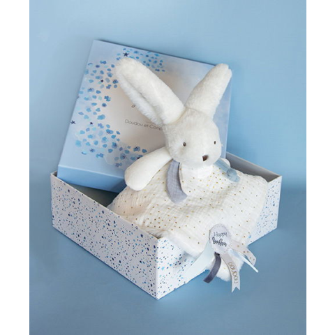 Doudou Ajándék készlet - nyuszi négyzet alakú takaróval 25 cm
