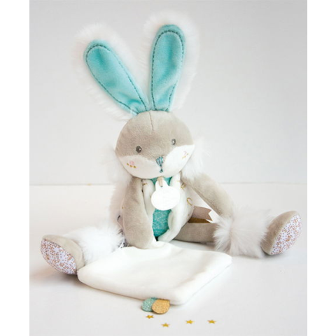 Doudou Ajándék készlet - plüss nyuszi takaróval 31 cm türkiz