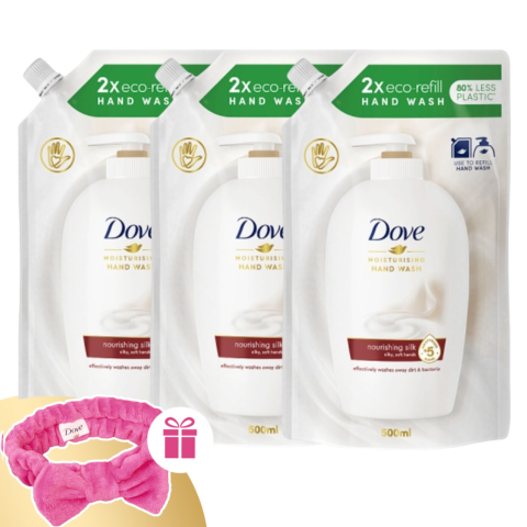 Teljes DOVE Folyékony Szappan Utántöltő Silk 3x500ml + Ajándék Hajpánt termékleírás