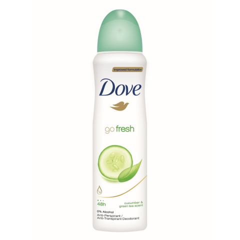A Dove Go Fresh Cucumber & Green tea, uborka és zöld tea illatú női izzadásgátló aeroszol már a legelső fújástól kezdve hatékony. 48 órás izzadásgátló hatása segít megőrizni magabiztosságodat, hiszen biztosan nem hagy cserben. Alkoholmentes és 1/4 rész hidratálókrémet tartalmaz, hogy ne csak védjen az izzadástól, de ápolja is a hónalj érzékeny bőrét. Segíti a bőr