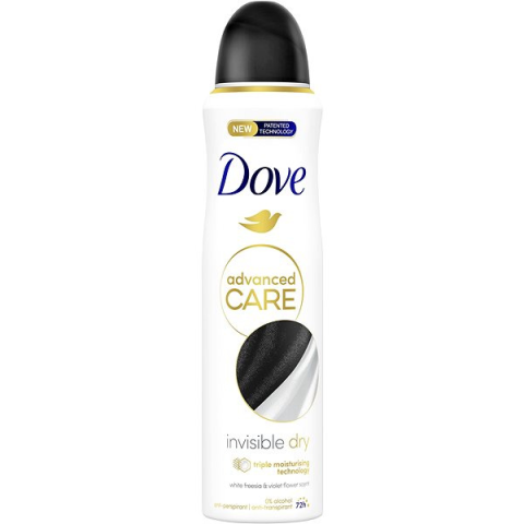Izzadásgátló - női, spray, zsíros, normál, kombinált, száraz és érett bőrre ajánlott, ibolya illat, hidratáló, védő és regeneráló, mindennapi használatra, nem hagy foltot, alkoholmentes, 150 ml-es kiszerelés A Dove Invisible Dry izzadásgátló akár 48 órás védelmet biztosít az izzadás ellen. Mivel nem tartalmaz alkoholt, segít csökkenteni a bőrirritációt. Összetétele 1/4 hidratáló krémet tartalmaz a gy