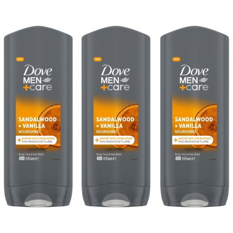 1 kép DOVE Men+Care férfi Tusfürdő Sandalwood + Vanilla 3x400ml