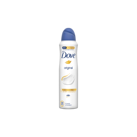 A Dove Original antiperspirant spray friss és hatékony védelmet nyújt az izzadás ellen, miközben kíméletesen ápolja az érzékeny bőrt. A termék 48 órás védelmet biztosít, és egyedülálló 1/4 hidratálókrém összetevője segít simává és puhává tenni a hónalj bő
