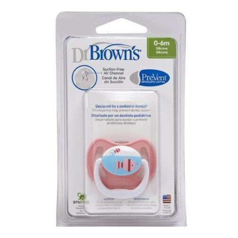 Dr. Browns PreVent vákummentes fogszabályzós játszócumi pink halacska 0-6hó