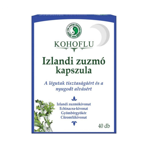 Dr.chen kohoflu izlandi zuzmó kapszula-éjszaka 40 db Izlandi zuzmót, növényi kivonatokat és L-lizint tartalmazó étrend-kiegészítő Az izlandi zuzmó erősíti a szervezetet, jótékony hatással van a légutakra. A gyömbér elősegíti a légutak megfelelő műk