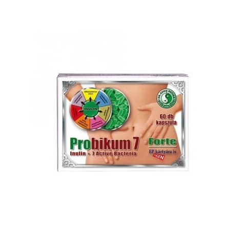 Dr. Chen Probikum 7 Forte 7-féle élőflóra törzset tartalmazó étrend-kiegészítő készítmény, amelyek természetes alkotóelemei az emberi bélflórának. Kapszulánként 360 mg inulint tartalmaz, mely egy természetes rost, ami emésztetlenül jut a vastagbélbe. Ha antibiotikum kezelés étrendi kiegészítésére használja a készítményt, az antibiotikum bevételét követően minimum 2 óra elteltével alkalmazza!