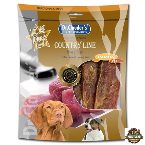 Dr.Clauders Dog Jutalomfalat Country Line Snack kacsa 170g Kiegészítő eledel kutyáknak. A Dr.Clauder's Country Snack Duck 95%-ban finom kacsahúsból készült. A kíméletes gőzzel történő szárításnak köszönhetően a hús megőrzi egyedi ízét. Összetétel: Kacs