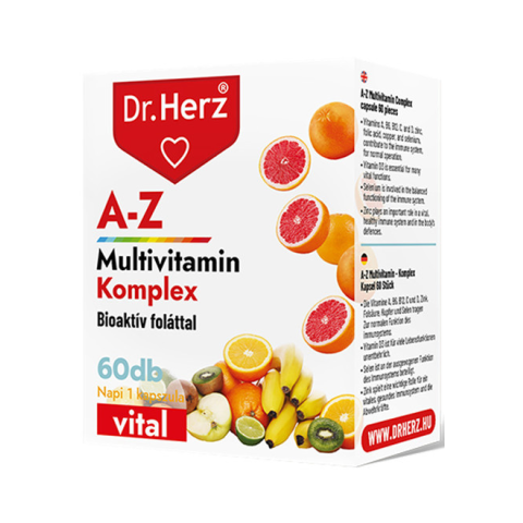 Az egészség megőrzéséhez és a teljesítőképesség növeléséhez elengedhetetlen a megfelelő tápanyagok fogyasztása. Napi egy szem Dr. Herz A-Z multivitamin kapszula tartalmazza mindazokat a vitaminokat, ásványi anyagokat és nyomelemeket, amelyre egy felnőtt s