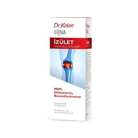 Dr.Kelen Luna emulgél Dr.Kelen Luna ízület-masszírozó gél (100ml) - GYDK12 Ízületi-és izomfájdalom ellen. A Dr.Kelen ízület emulgélt ízületi-és izomfájdalom esetén javasolt a bőrbe masszírozni. Meghatározó anyaga az MSM, Glükozamin és Boswellia- kivona