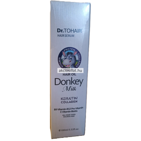 Dr.Tohair Donkey Milk Keratin Collagen Szamártejes Hajhidratáló Olaj 100ml A Dr.Tohair Donkey Milk Keratin Collagen hajhidratáló olaj minden haj- és fejbőrtípusra ideális. Ez a szulfátmentes termék hipoallergén tulajdonságokkal rendelkezik, és hatóanyag
