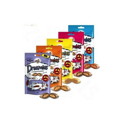 Dreamies Macska Jutalomfalatkiszerelés: 60 gVálasztható ízek: csirkés, lazacos, marhás, sajtosA macskák ellenállhatatlannak tartják ezeket a ropogós négyzeteket, melyek belül finom krémesek.Felhasználási javaslat:A Dreamies egy táplálékkiegészítő/jutalomfalat macskáknak.Max. 20 darabot adjon naponta. A tasak felbontásától számított 4 héten belül használja fel. Mindig gondoskodjon friss vízről kedvence számára. Száraz, hűvös helyen tárolja.