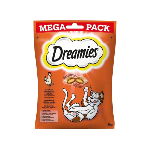 Ízletes jutalomfalatok macskáknak, ropogós külsővel és krémes belsővel, választható ízekben: csirke, lazac, marha, sajt. Gabonaféléket, húsokat, vitaminokat és ásványi anyagokat tartalmaz a macskák egészségének támogatására. Dreamies Macska Jutalomfala