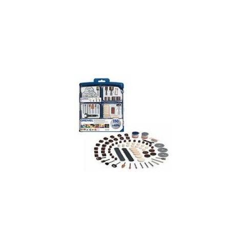 Dremel 150 darabos multifunkciós tartozékkészlet. A Dremel 150 darabos multifunkciós barkácstartozék-készlete 150 kiváló minőségű eredeti Dremel tartozékot tartalmaz, amelyek között megtalálhatók a gyors és egyszerű cserét biztosító EZ SpeedClic rendszerű tartozékok is.Ez a barkácstartozék-készlet számos különféle alkalmazáshoz használható különféle anyagokban. A tárolódoboz biztosítja a Dremel tartozékok praktikus tárolását.