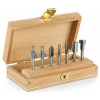 A 7 darabos Dremel többcélú marószár készletben található a Dremel mind a hét kiváló minőségű marótartozéka. Ezzel a tartozék-készlettel számos különféle maróalkalmazást végezhet, mint az élek, sarkok, egyenesek, kulcslyukak megmunkálása, ill. betűk és szavak marása különféle anyagok széles választékába, amelyek között puha- és keményfa, rétegelt lemezek és laminált lapok találhatók. Marjon vájatokat ajtókba az új fogantyúk felszereléséhez, te