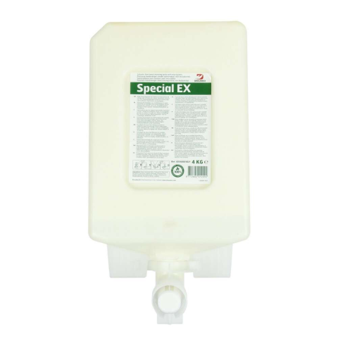 Dermatológiailag teszteltOldószermentesBőrbarátTermészetes súrolóanyagot tartalmaz Dreumex Speciál 4kg krém oldószermentes kéztisztító EX4000 adagolóhoz - Dreumex EX4000 adagolóval használható erős ipari kéztisztító - friss citrus illatú - krém állagú